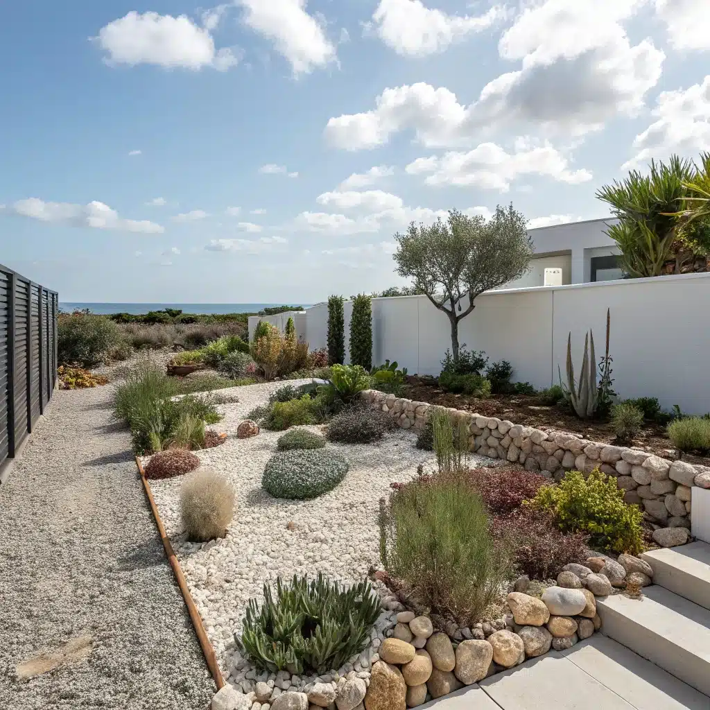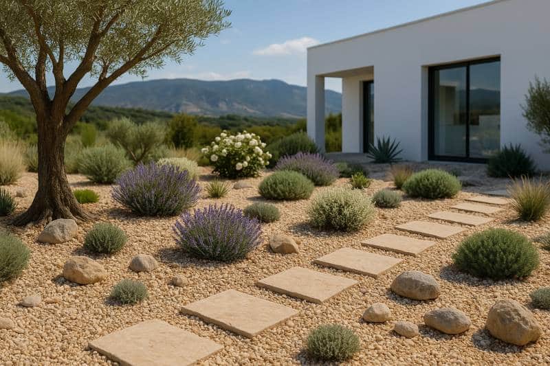 - zones sèches → alternatives (gazon synthétique, paillage, gravier)